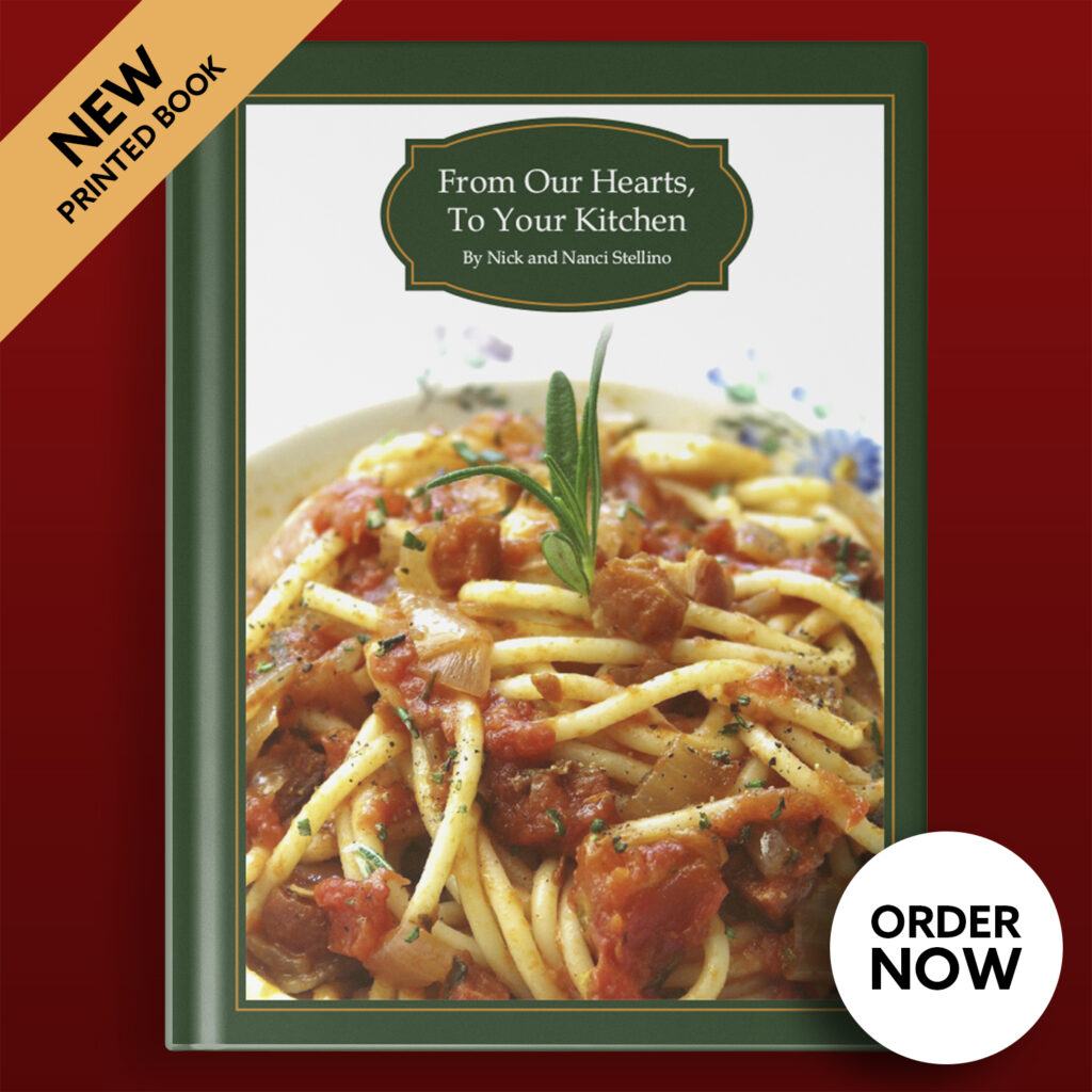 This new cookbook, From Our Hearts To Your Kitchen, is not just another printed cookbook. This cookbook weaves together stories, recipes, videos, audio recordings, and personal memos from the hearts of Nick and Nanci Stellino.